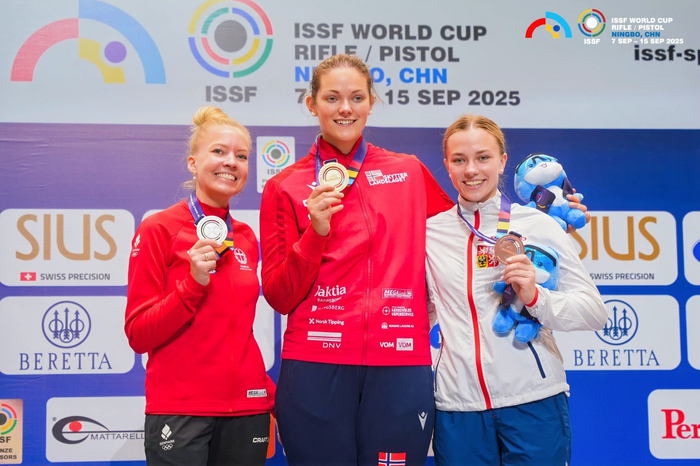 射击世界杯宁波站|挪威选手女子50米步枪三姿摘金