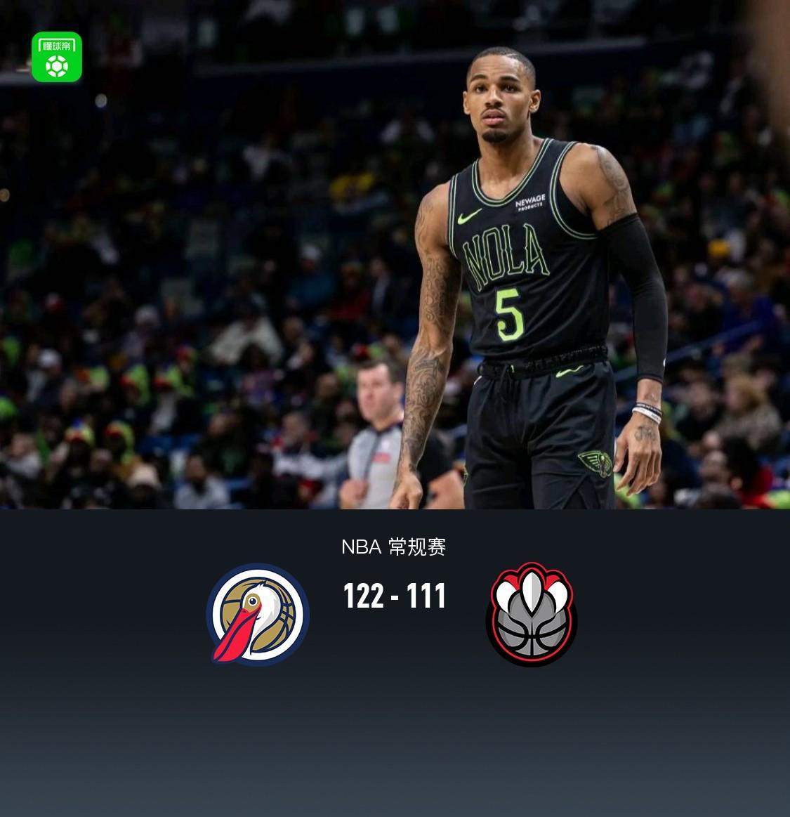 开云APP下载-鹈鹕122-111猛龙,墨菲28+7,穆雷27分,英格拉姆22分